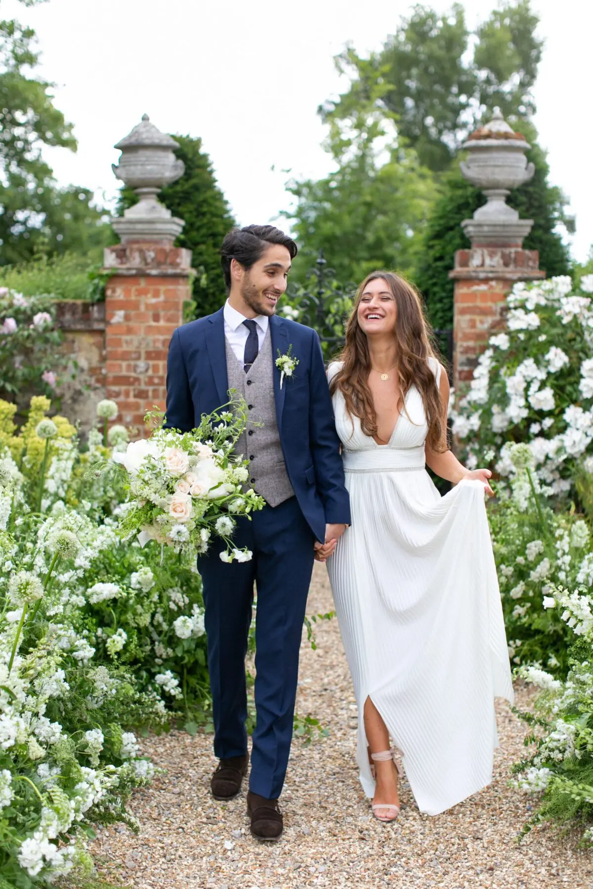 "With the current global pandemic and uncertainty surrounding future wedding celebrations, the idea behind this stylized shoot was to demonstrate how couples can still keep the romance alive and celebrate love with an intimate summer wedding. Rather than models, a real couple was used, wearing their own wardrobe and styling their own hair and makeup. Not only did this allow the team of vendors to ensure safety standards and social distancing, but it added a layer of authenticity and real-life romance to the photo shoot. With Four Seasons Hampshire as the backdrop, the final images reflected some beautifully whimsical inspiration for summery garden weddings in the future."