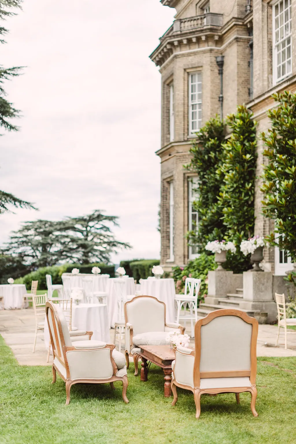 Following the ceremony, guests were transported to the regal Hedsor House, where they were greeted with champagne and delectable canapés on the perfectly manicured lawn. The joyful atmosphere was enhanced by the presence of a roaming band that added a lively and vibrant note to the celebrations.
