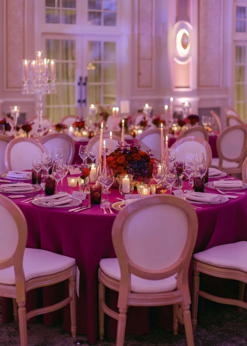 It took me six weeks and of course our sample day, but I managed to persuade Golnessa & Nick to move away for plain white linen and be bold with a fusica coloured table cloth to complement the beautiful bold flowers within the design. I know this was the right decision after they walked into the ballroom and the tears of happiness continued for at least 10 minutes!